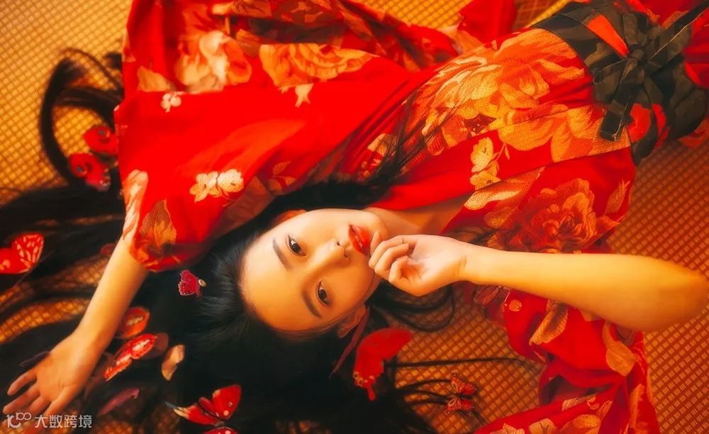 上图这种就不是用具体的线构图,模特在躺着拍摄时,身体处在画面对角线为主,手放在头顶上也是对线条进行进一步延伸。