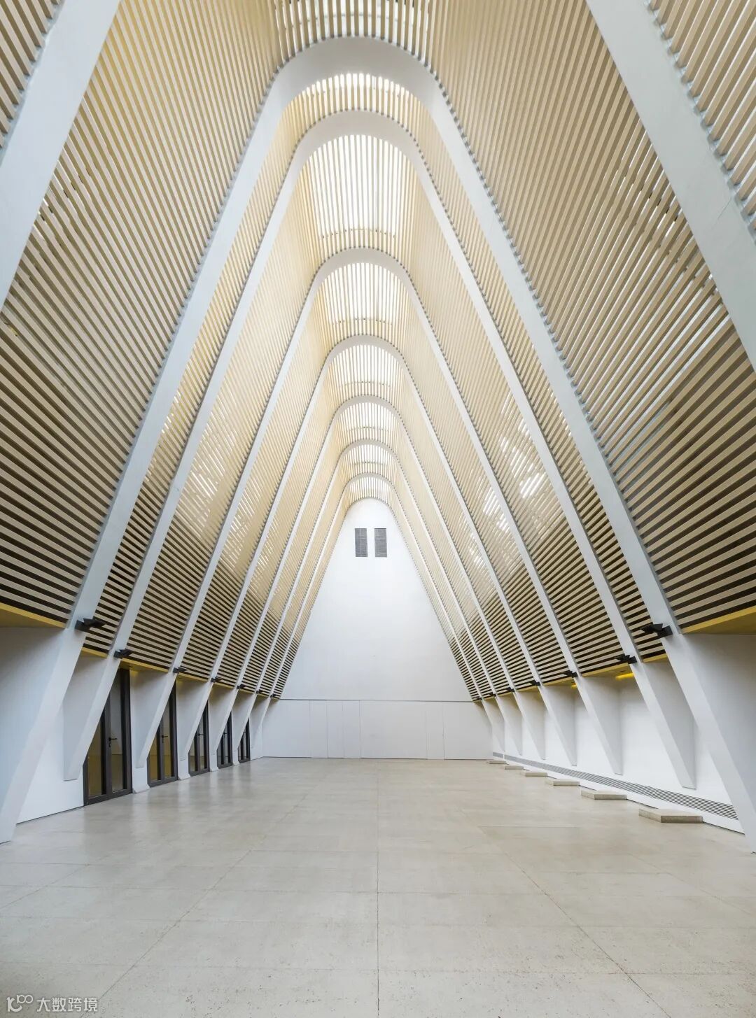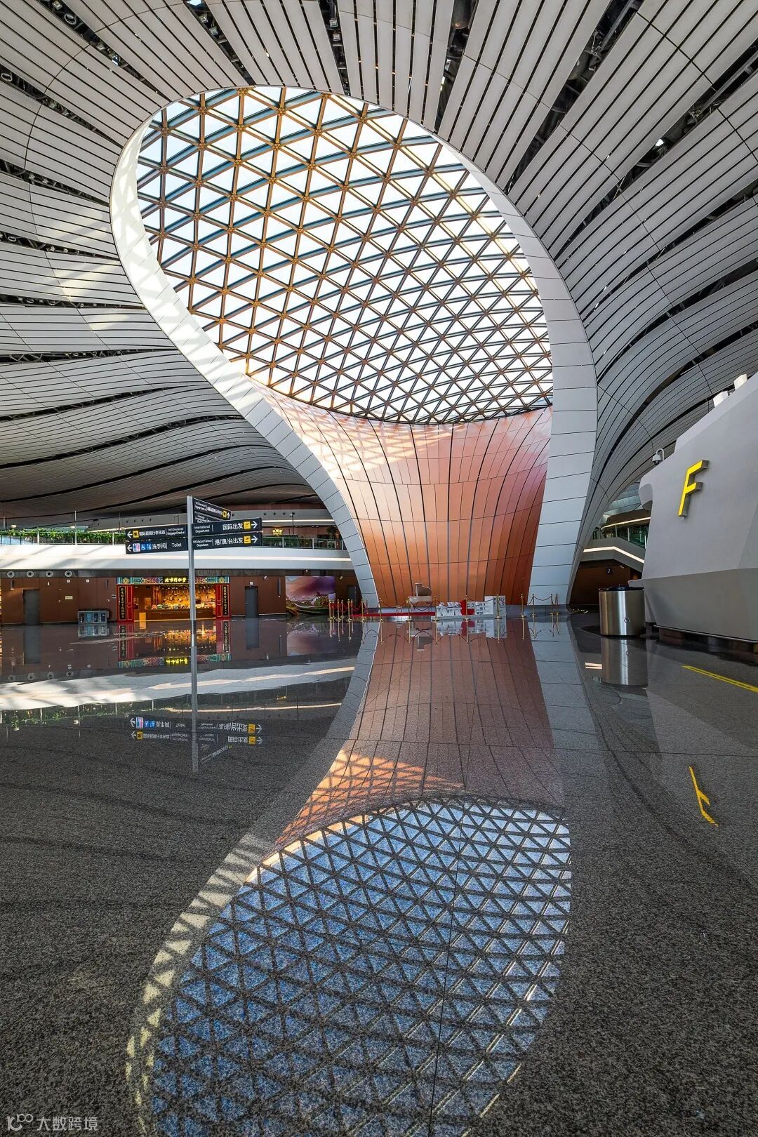 这是一个酒店的礼堂,屋顶的透光设计让室内结构非常明亮。在拍摄中,需要考虑光线位置和光比控制,这张照片拍摄于临近傍晚的时刻,这时可以凸显建筑的层次和质感。