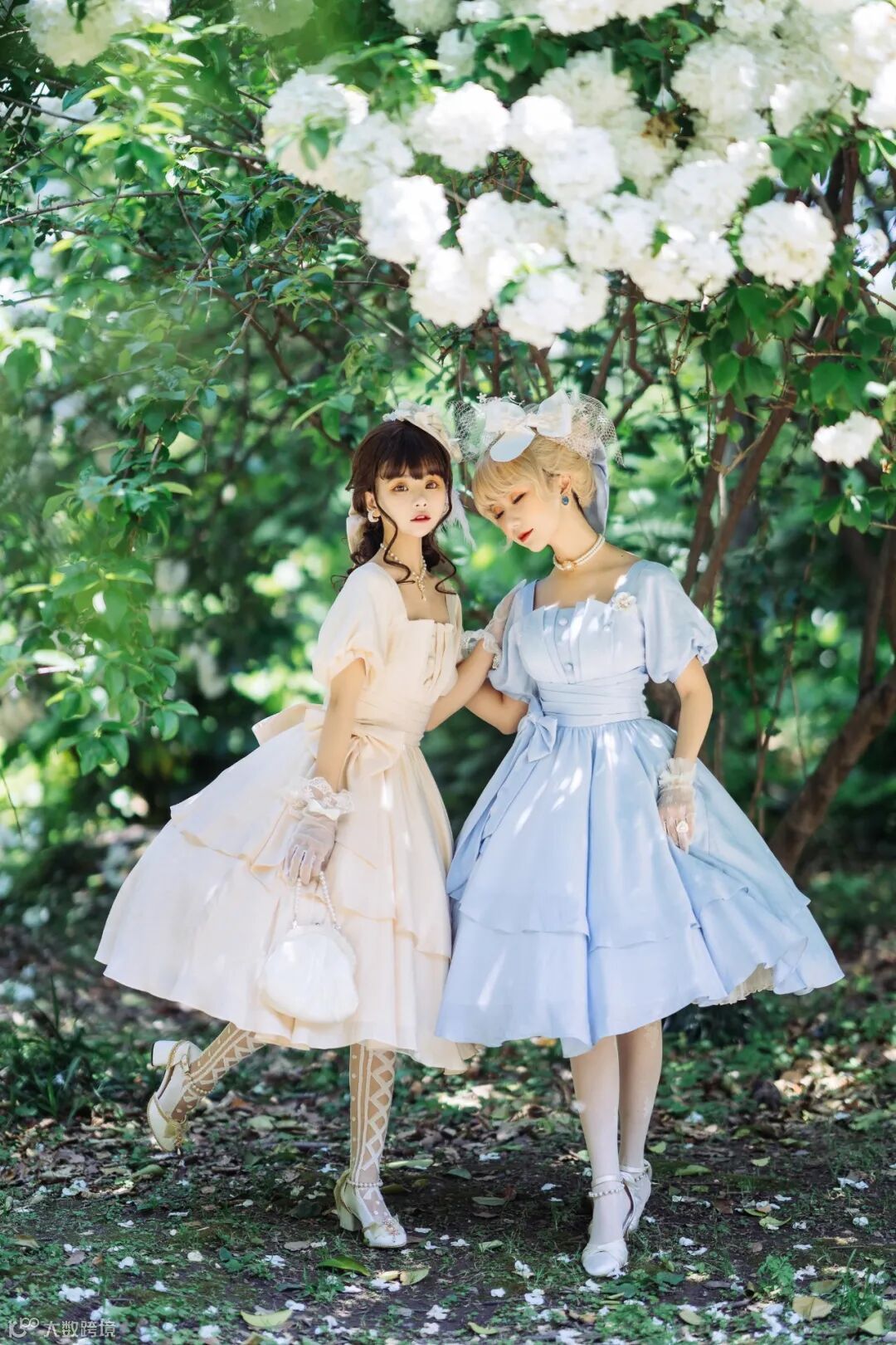 在阳光强烈的午后,我们可以在树荫下拍摄,避免阳光直射。但并不是说要在完全的阴影处拍摄,可以利用阳光透过树荫形成的光斑,给照片增添色彩。白色的绣球花,无论是作为前景还是背景,也会显得十分优雅。