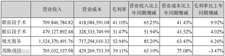 分业务板块来看,屈光业务和视光业务增速最快,为公司的业绩增长贡献了最大的部分: