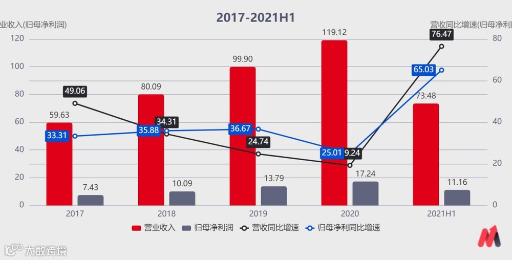 与低迷的股价相比,公司的业绩增长却非常强劲。今年上半年,公司实现营业收入73.48亿元,同比增长76.47%;实现归母净利润11.16亿元,同比增长65.03%;实现扣非净利润12.27亿元,同比增长111.92%。从表观看来,公司今年上半年的业绩实现了快速地增长。