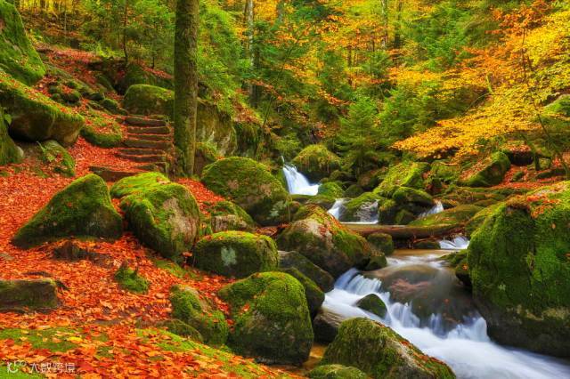 秋天是拍水的好时机,不仅因为秋天金色的树叶与光影适合拍摄流水。同时因为秋天的小溪的流水不像夏天那么湍急,小小细流更适合拍摄慢门效果。