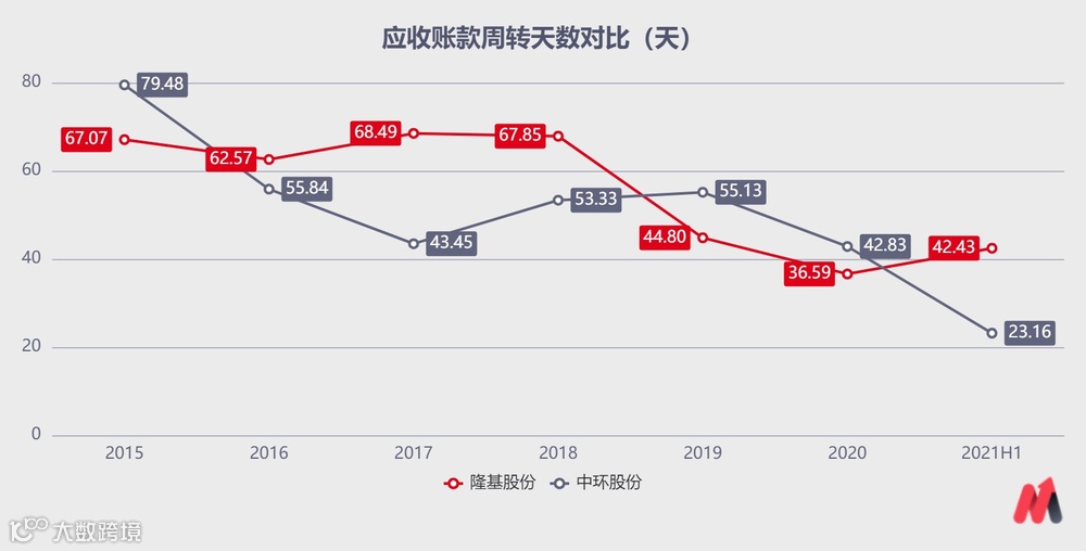 从存货和应收账款的周转情况来看,存货周转天数中环好于隆基,应收账款周转天数二者相差不大,且上半年中环的存货周转天数和应收账款周转天数都低于隆基,表明中环的经营效率也有所进步。