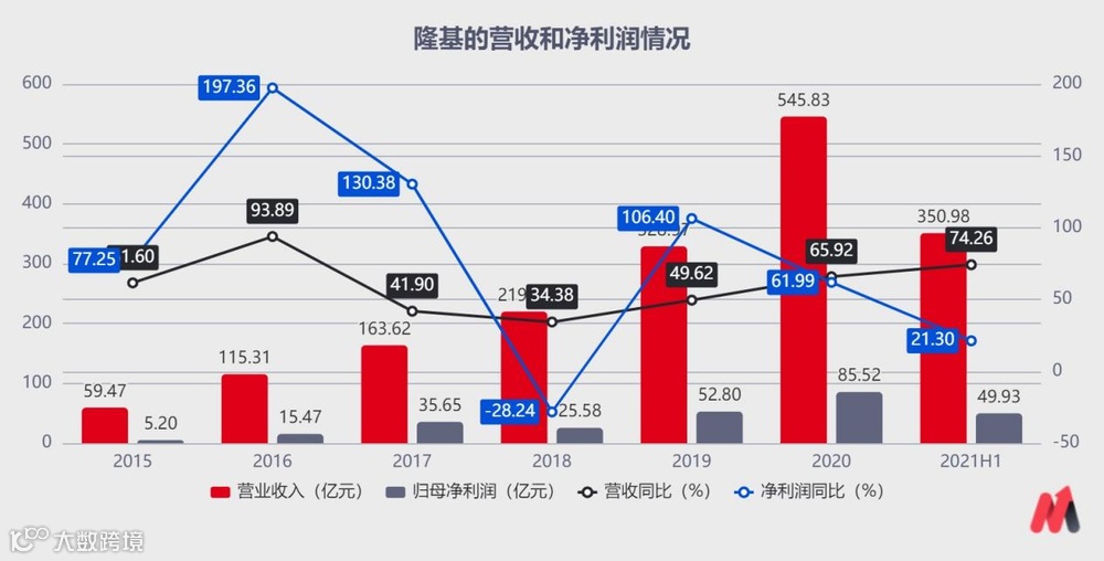 近日,隆基股份发布了2021年上半年的财报,营业收入350.98亿元,同比增长74.26%;净利润49.93亿元,同比增长21.30%。隆基的业绩不及市场预期,第二天股价大幅杀跌8%。