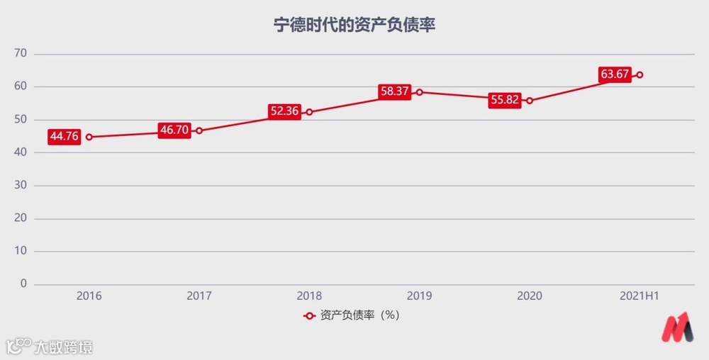 不仅如此,上半年宁德时代的资产负债率已经突破了60%,达到63.67%,这是2016年以来的最高水平。