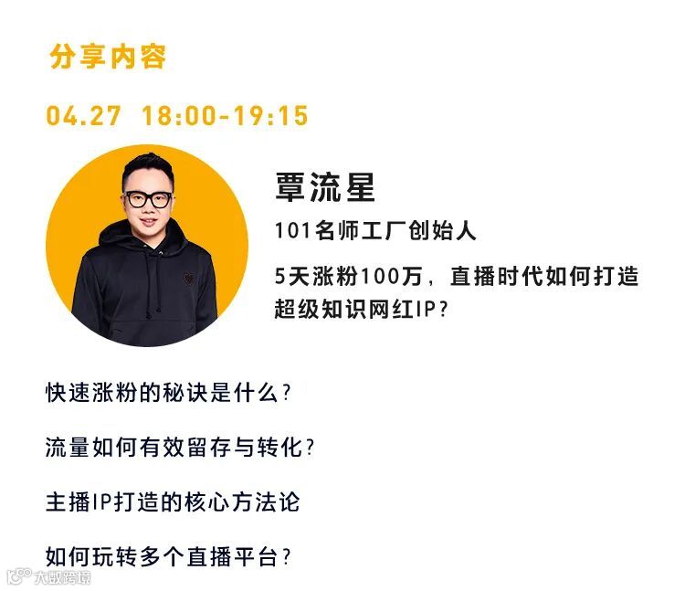打造出N个网红IP的MCN机构 101名师工厂创始人覃流星,教你主播IP打造的核心方法论。