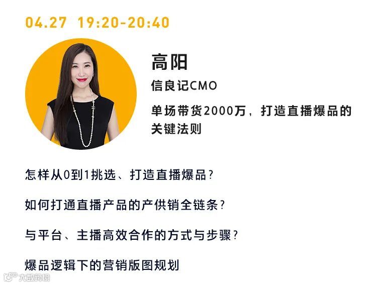 从选品到运营,从策略到实战,两天4场的来自一线的全方位深度分享,让你一次性get霸屏方法,玩赚直播带货。
