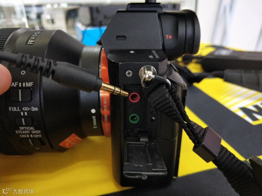 将连接线的两端分别插入接收器和相机的麦克风接口