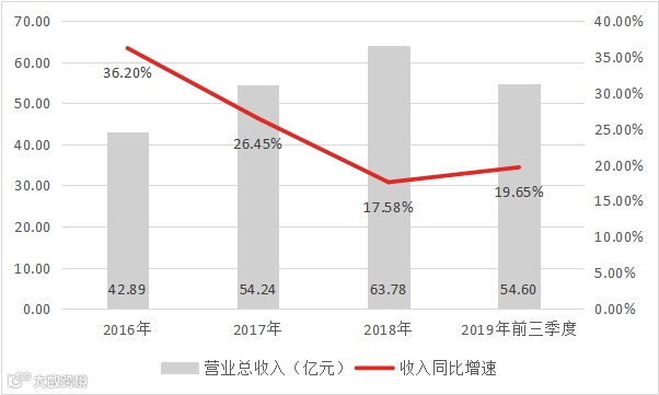 2019年前三季度,良品铺子实现营收54.60亿元,同比增长19.65%,营收规模已经超过2017年全年;预计2019年全年实现营业收入72.38亿元至79.6亿元,较上年同期增长13.49%至24.84%。