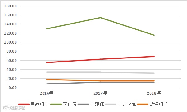 与行业内其他企业相比,良品铺子的营运能力也比较不错。以2018年数据为例,良品铺子的应收账款周转率显著高于行业内大部分竞争对手,仅次于基本只接受现金交易的来伊份。