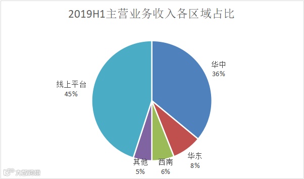 从省份来看,湖北、江西、湖南、四川、河南5省为重点省份,其中湖北占比最高,2019H1线下销售收入中湖北占比48%。
