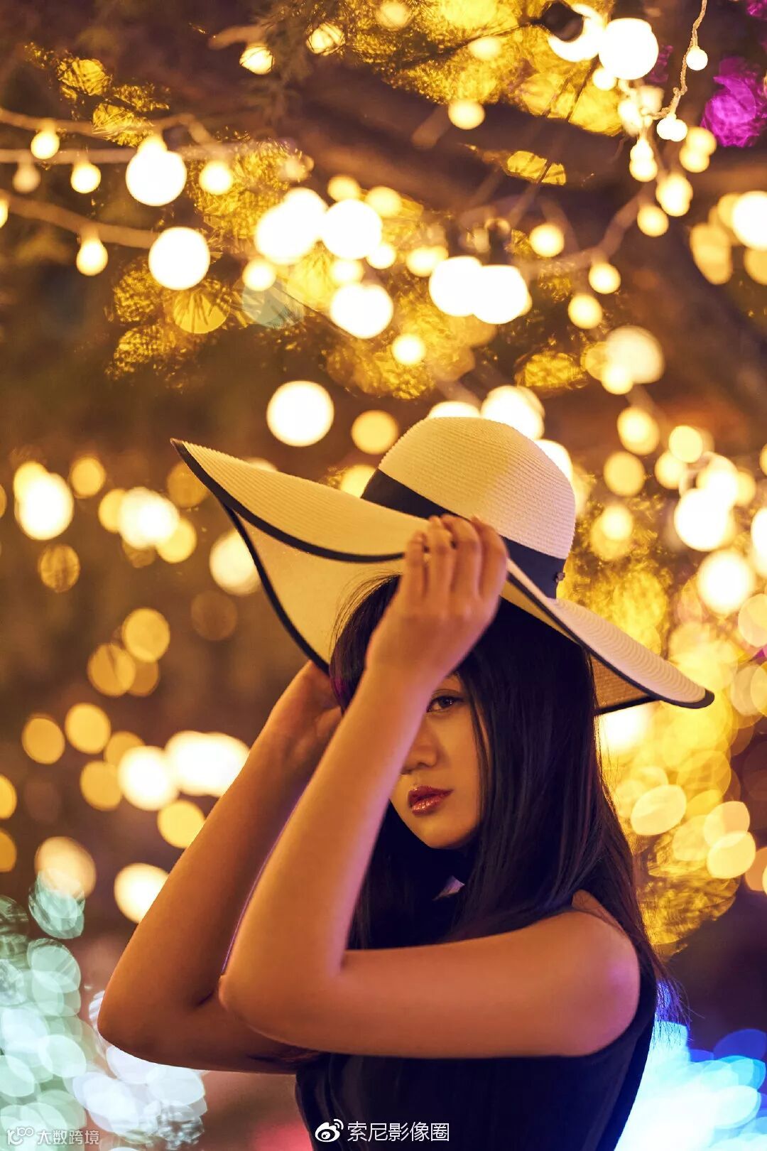 光线好的环境下,什么镜头也不差,真正考验镜头综合性能就是在弱光环境,对焦和虚化才能看出不同。我拿到镜头的第一时间就约了合作很久的模特娜娜来到蓝色港湾实拍。路边的树上挂了很多彩灯,这就是唯一的光源,同时可以提供丰富的背景光斑。人算不如天算,娜娜堵在来的路上,眼看着天色已晚,天空的蓝色褪去了,暗淡的背景让拍摄难度再加一成。