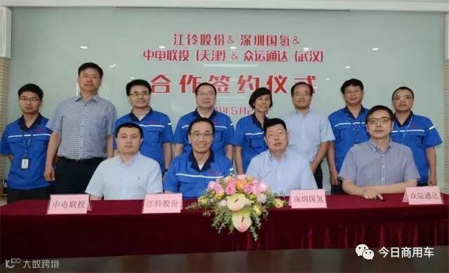 上午11点,江铃汽车与合作伙伴深圳国氢、中电联投(天津)、众运通达(武汉)三方战略合作签约仪式在公司行政大楼贵宾室举行。签约内容包括2018年超过3000台凯锐EV电动轻卡采购协议及首期500台订单签约。股份公司总裁范炘、第一执行副总裁熊春英、副总裁朱水兴、总裁助理刘让坡等出席签约仪式。