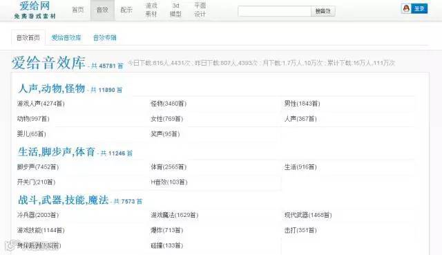这个主要是提供免费游戏素材的网站,当然也包括音效素材。