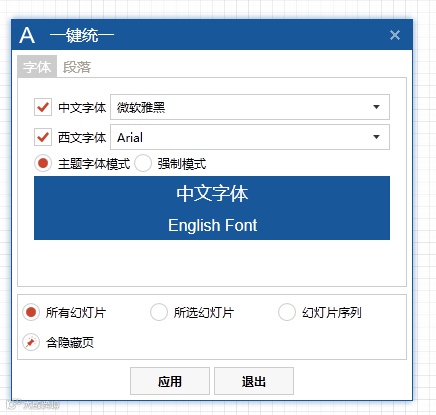 一键统一PPT中的字体和段落: