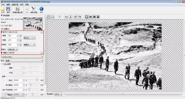 打开PHOTOZOOM PRO这个软件,在放大的尺寸中,你可以随便调整图片输出的大小,图片保证不会失真。
