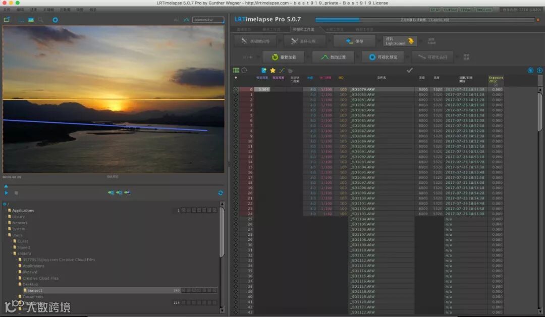 没有app自动合成视频的情况下,只能靠电脑软件制作了。推荐大家使用LRTimelapse(简称LRT),非常专业的延时摄影编辑软件。这里给大家介绍两种后期合成视频的方法:一种是简单的,无须任何后期制作,直接用相机拍摄的原始JPG合成视频,省时省力;还有一种是通过专业RAW后期修图调色,费时费力,精益求精的方法。