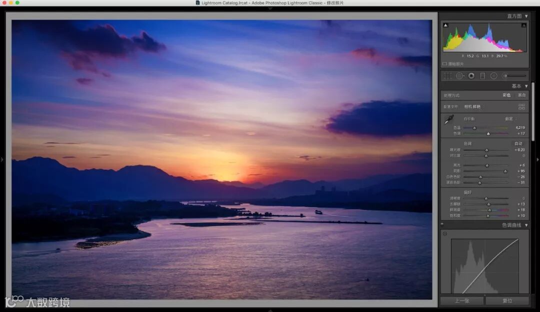 点击“拖到LiGHTROOM“按钮,导入到LIGHTROOM中进行RAW编辑。