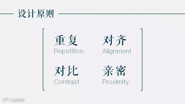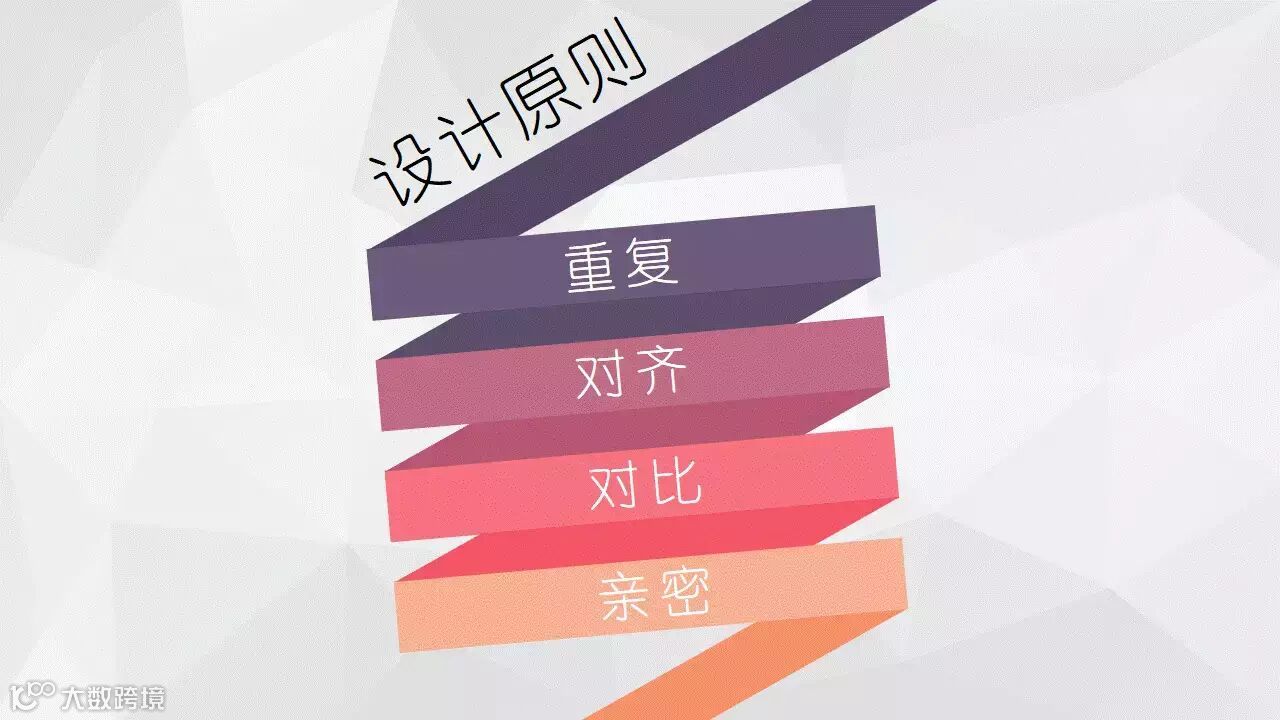 无论PPT怎么创新,也离不开最基本的设计原则:重复、对齐、对比、亲密。