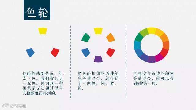 色轮的基础是黄、红、蓝三色,我们称其为三原色。