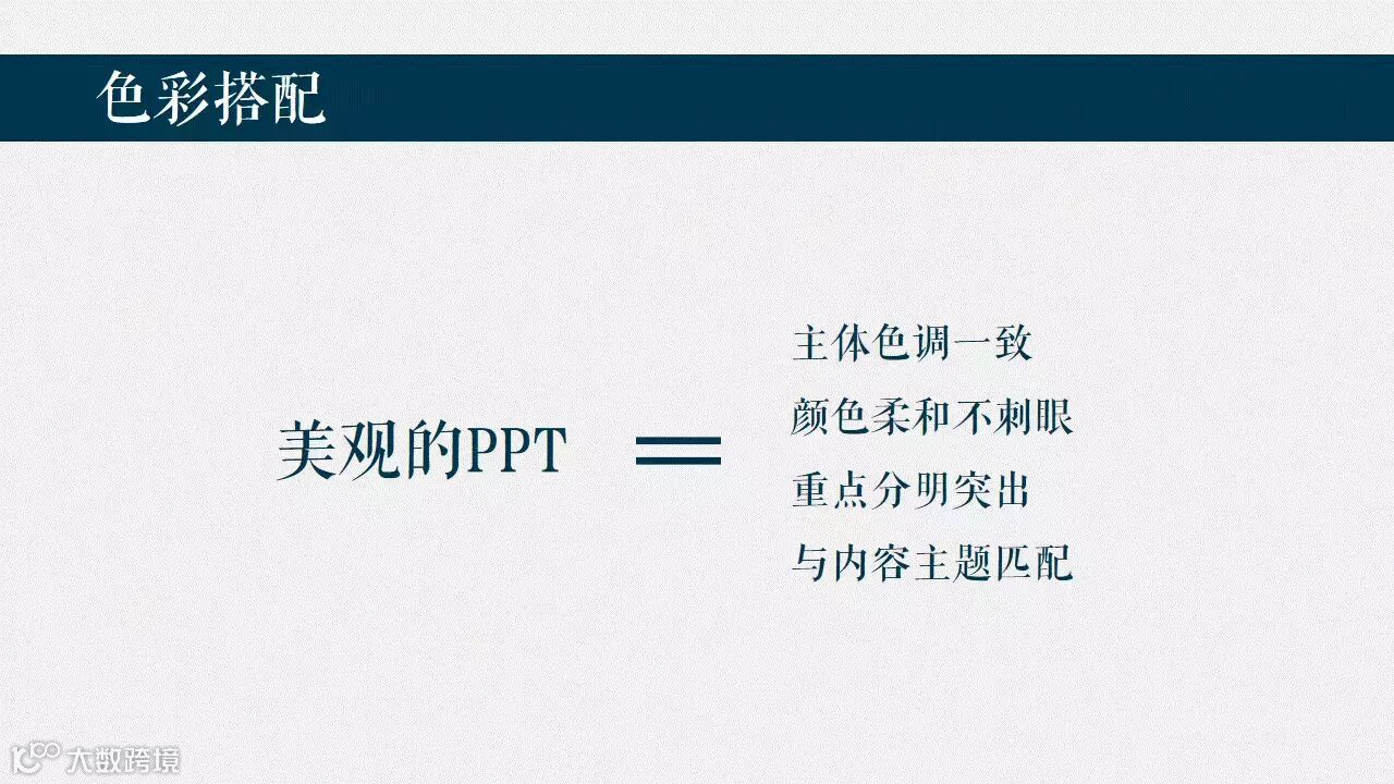 一份美观的PPT,应该选取的柔和而不刺眼的颜色作为同一章节甚至整个PPT的主色调。