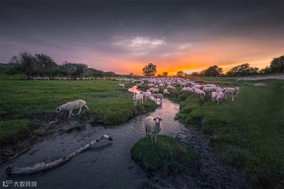 D4上午:敖包吐拍摄日出、雾海光影、天太永蓝色的滩涂上【百牛图】【千羊过河】【水中奔马】。
