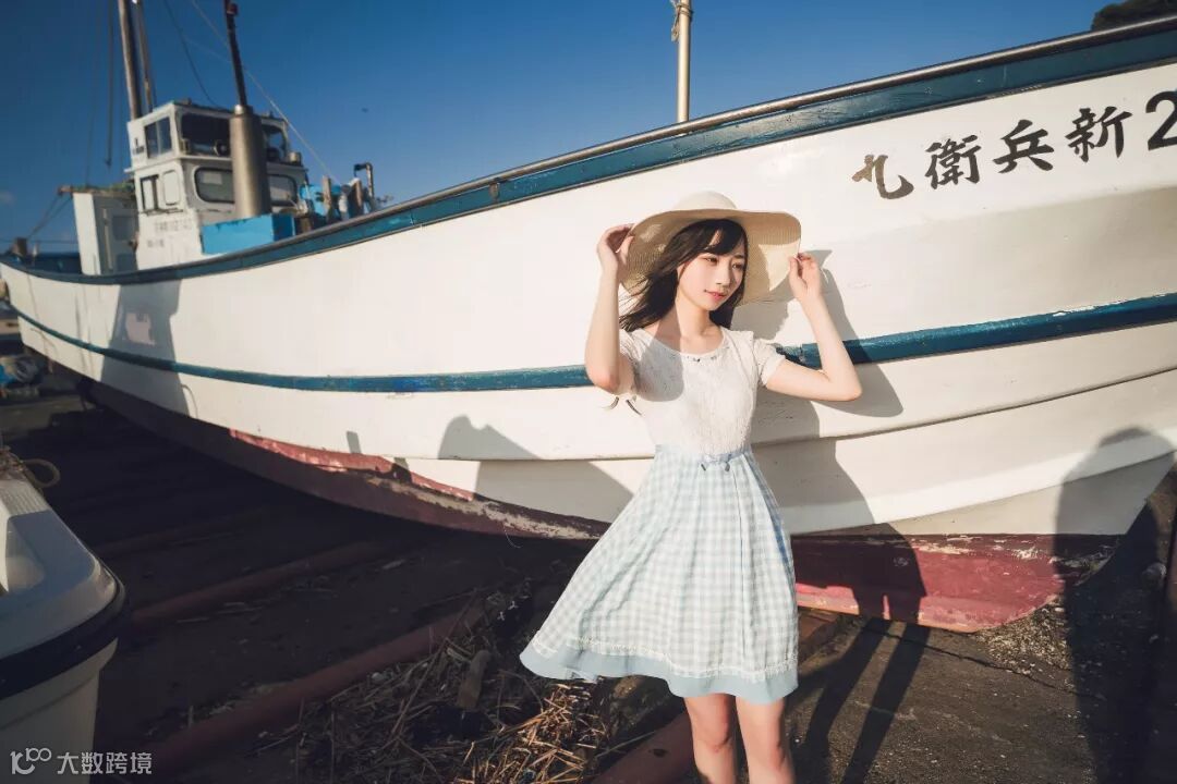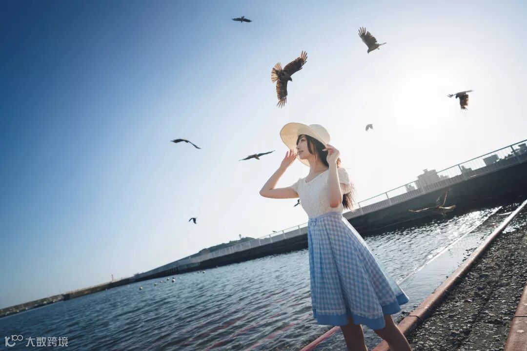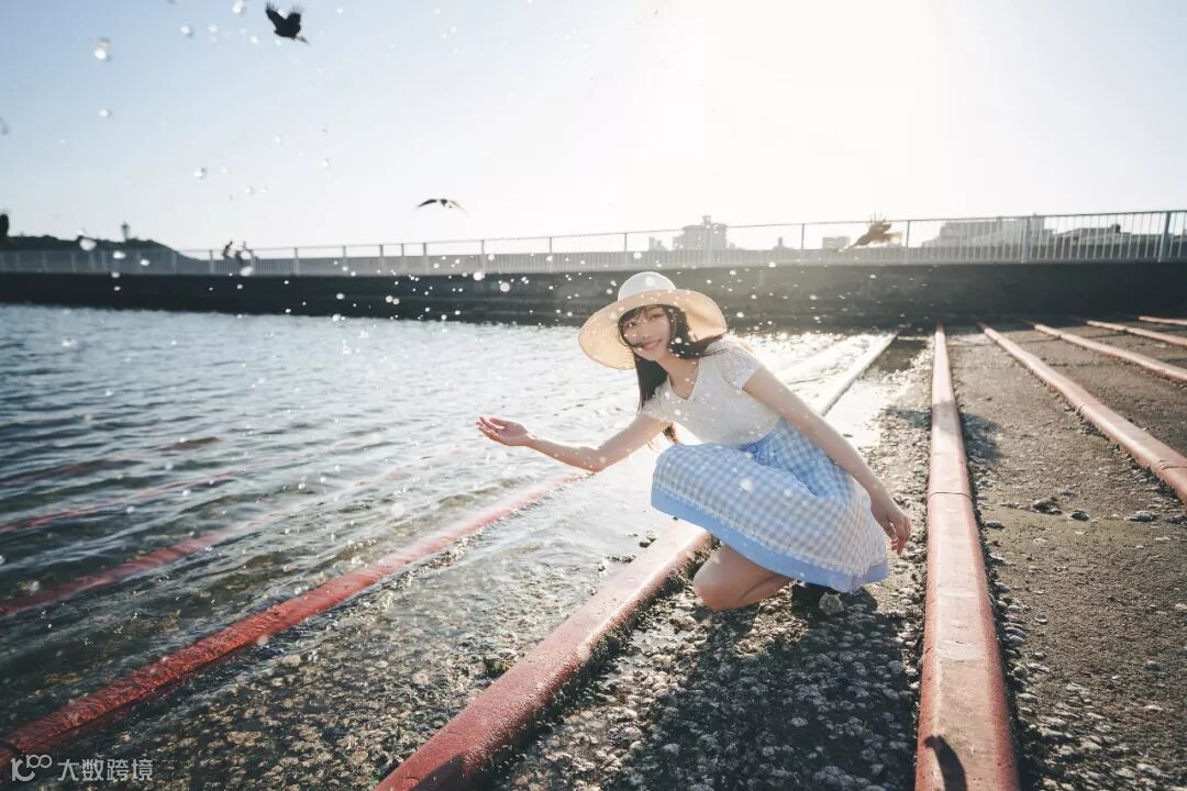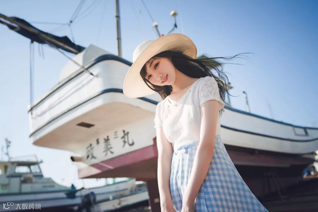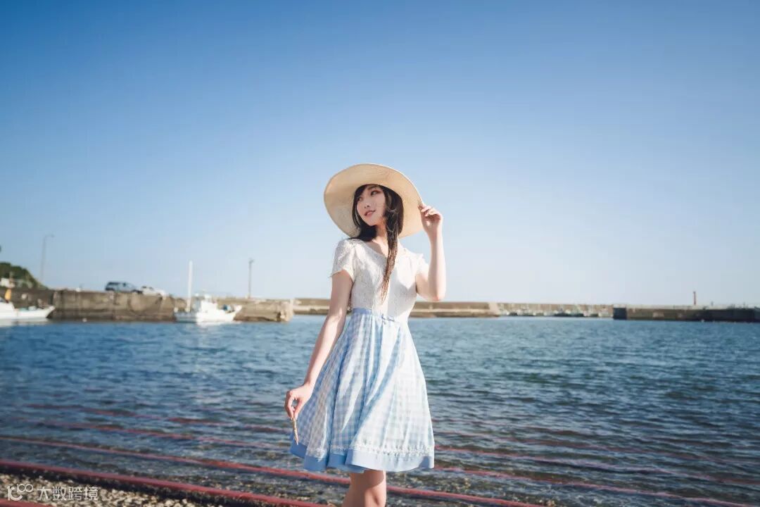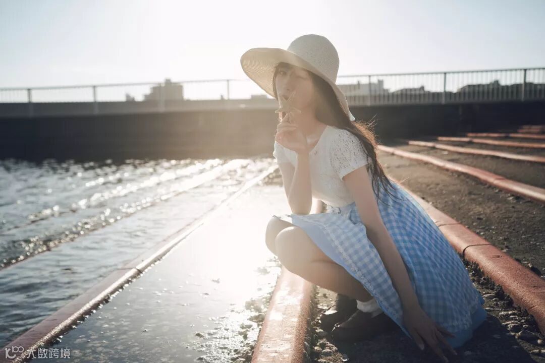 下午的光线很强烈,模特戴上了一顶草帽。草帽是夏日拍摄必不可少的道具,既可以遮挡阳光,又避免太阳过于刺眼,能为夏日主题拍摄增加意境。使用35mm端拍摄人像,我会选择横构图,带入更多的环境场景,交代现场的情况。