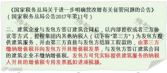 1、发包方:凭实际提供建筑服务的纳税人开具的发票抵扣