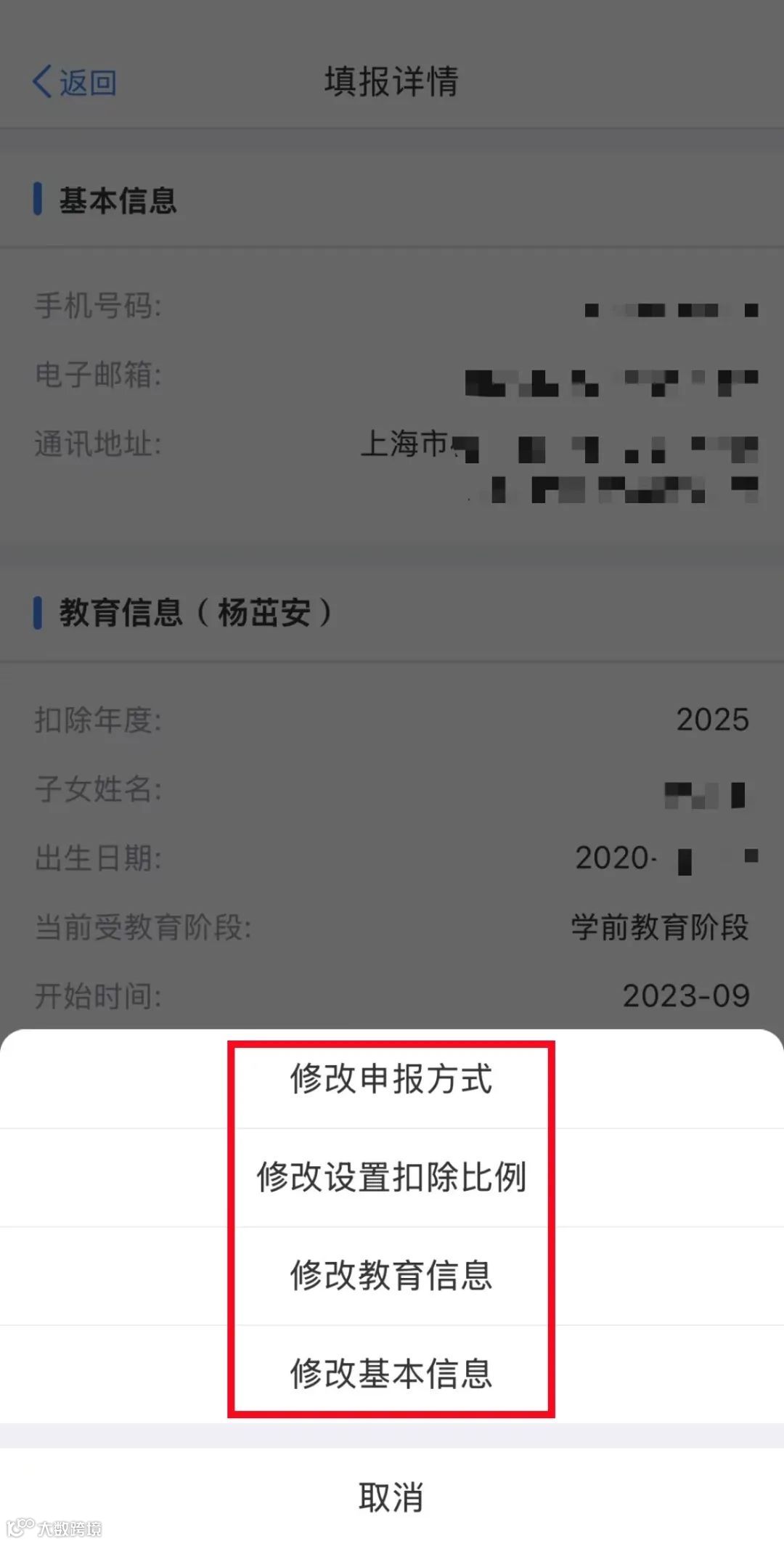 如果2025年度个人所得税专项附加扣除信息有变动,需修改或删除信息!