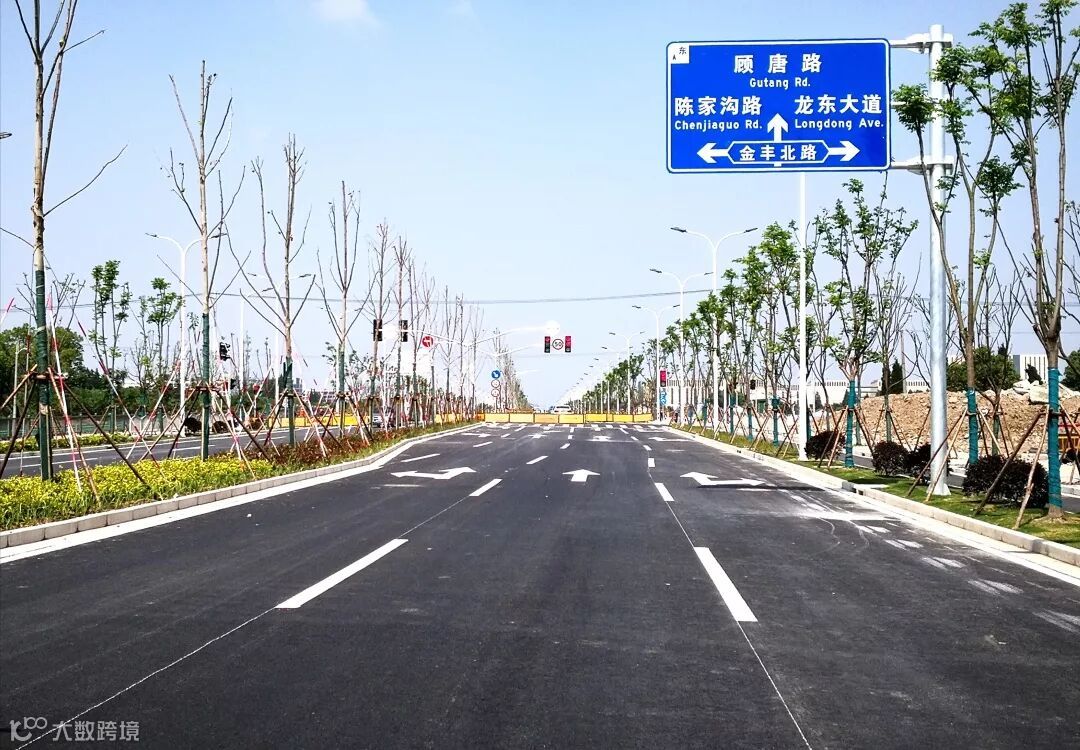 锦绣东路(金槐路—顾唐路)道路新建工程竣工通车后,为南侧的龙东大道及北侧的金海路分流部分交通,缓解了主干道的交通压力。
