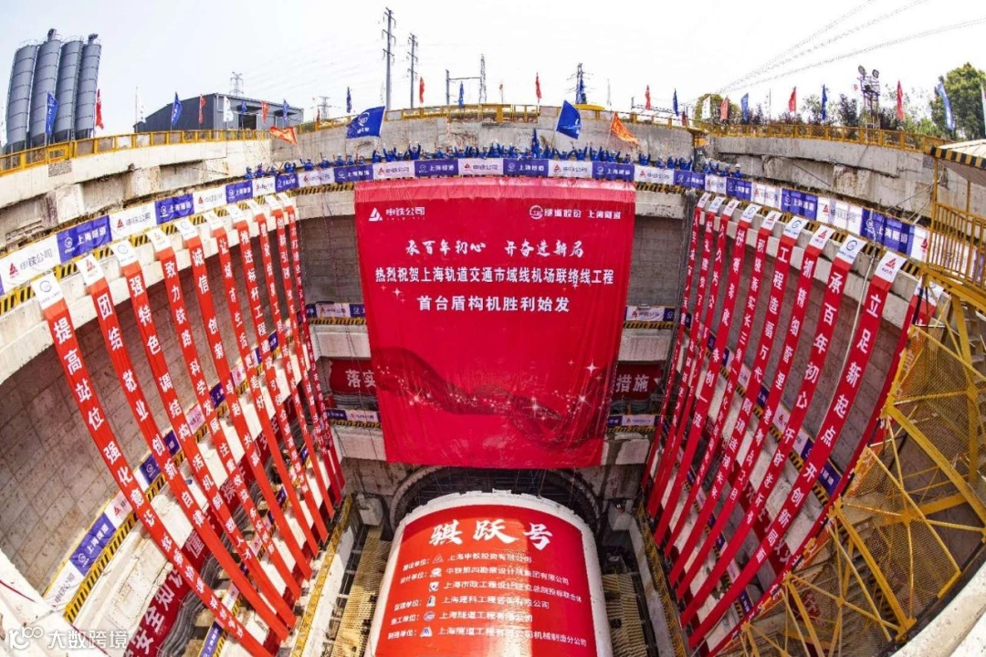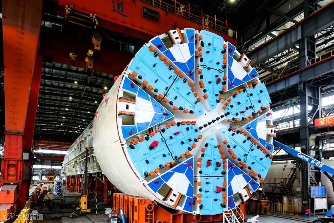 “骐跃号”超大直径盾构机为国产自主研发,直径14.05米,整机总重约3200吨,总长约99米,其中主机长度约16米,刀盘切削直径达14.07米,最大推进速度为60毫米/分钟,能在隧道掘进中实现灵活转弯。针对项目工程难点,“骐跃”盾构设有五大特技——切削系统常压换刀技术、驱动系统高压密封技术、推进系统可重构分区液压控制技术、多手段地面沉降控制技术、辅助系统无轨式车架技术,形成盾构装备可靠切削、高压密封、姿态稳定、风险保障、高效运输五大优势,将为市域铁路工程建设保驾护航。