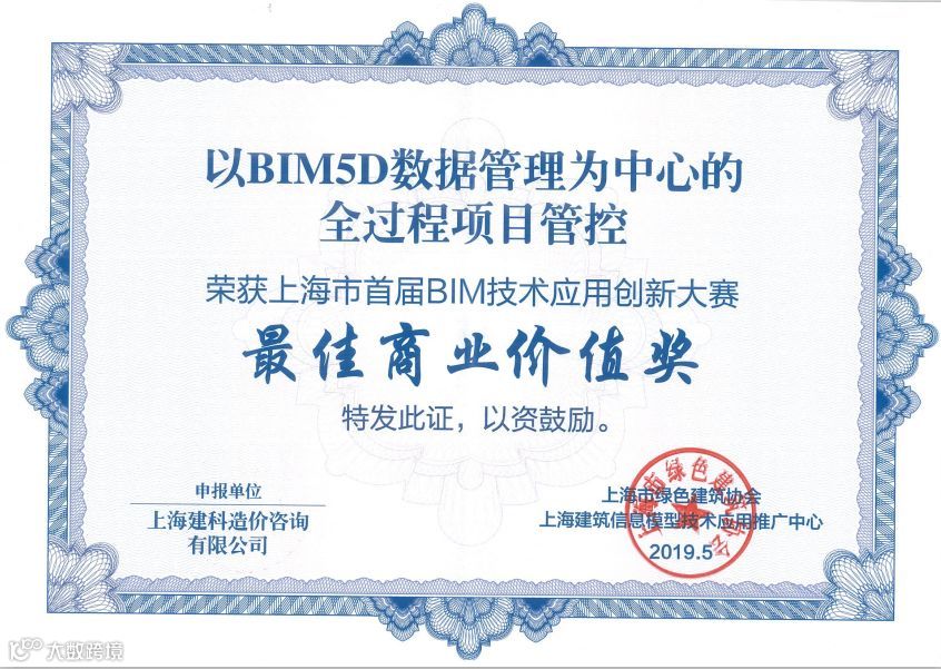上海建科造价斩获上海市首届BIM技术应用创新大赛两项大奖