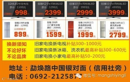 导读:旧家电换新电视补贴300-1000元旧家电换新冰箱、洗衣机最高补贴300-600元旧家电换小家电最高补贴50