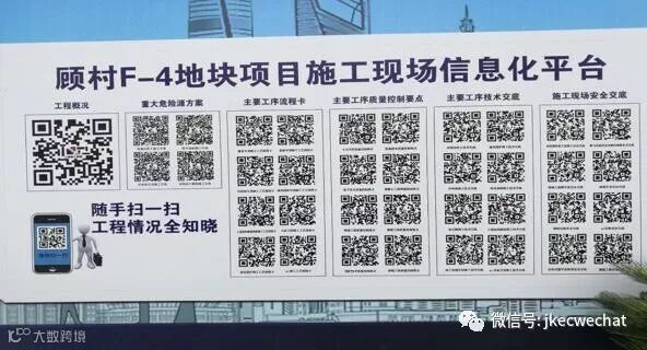 顾村原选址基地市属征收安置房F-4地块项目作为上海市PC结构观摩样板项目,在PC结构技术管理上有很多亮点,诸如项目大门入口处即张贴《危大工程辨识风险排查目录》、《施工现场信息化平台》,项目概况、重大危险源方案、主要工序流程卡、主要工序质量控制要求、主要工序技术交底、施工现场安全交底等项目信息二维码“扫一扫”全知晓;样板宣传走廊中PC标准层、转换层施工工艺流程、预制构件吊装顺序、套筒灌浆施工流程等采用图解一目了然;现场每一个PC构件板块均有二维码,详细内容有具体使用部位,基本属性参数等,便于现场吊装及验收。