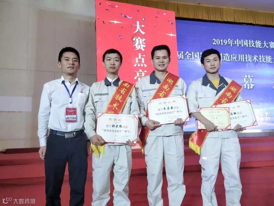 2019年中国技能大赛——第三届全国智能制造应用技术技能大赛湖南选拔赛颁奖典礼在湖南娄底举行,株洲中车特种装备科技有限公司三名参赛选手:朱昌盛、刘武聪、汤敏获得湖南选拔赛职工组—切削加工智能制造单元安装与调试赛项一等奖,同时获得优秀团队奖,三人均荣获“湖南省技术能手”光荣称号。