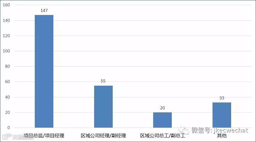 对于自己未来三年的职业发展,希望成为项目总监或项目经理这一岗位层级的占实际参与调研人数的59%;希望成为区域公司经理或副经理的占22%;希望成为区域公司总工或副总工的占8%。“其他”为期望岗位为行政或经营管理类人员。
