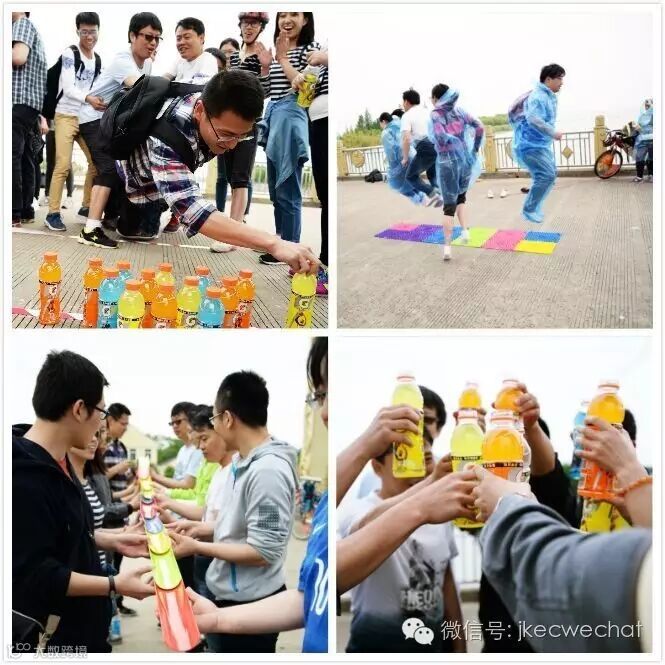 10公里骑行过后,全员在崇西水闸补水、休息,随后进行了有趣的团队游戏,有群龙取水,球行万里、指压板跳绳等游戏,大家在游戏过程中进行了有效的团队合作:全队通力合作拿到每一瓶佳得乐;全队默契相接最终让小球顺利到达目的地;6个人在凹凸不平的指压板上一起“酸爽”地跳绳……现场留下一片欢声笑语。虽然天公有些不作美,下起了小雨,可是这并不影响大家参与游戏的兴致。三个小组在三个游戏环节中各自取得了一次胜利。