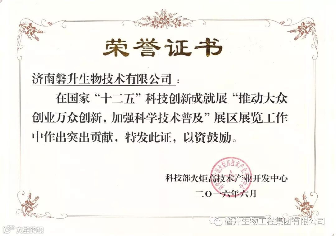 磐升生物工程集团有限公司终坚持科技创新为引擎,拥有实力雄厚的科研团队,其中省突出贡献专家1人,泰山学者2人,博士7人,正高级工程师2人,高级工程师2人,中级工程师7人,研发人员总数占职工总数的65%。