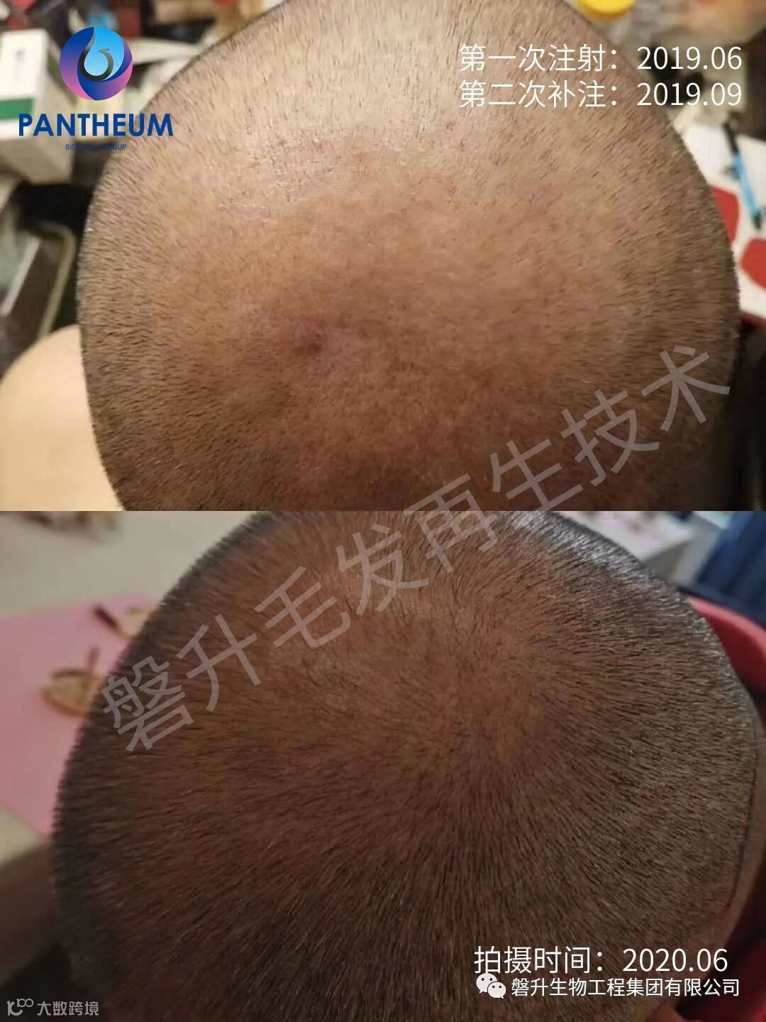 以下是治疗者真实跟踪拍摄照片,通过两次头皮组织细胞注射,脱发者已经成功长出头发,且和原生发保持一致,非常自然,完全分不出原生发和新生发,浓密度和原生发也是保持一致。