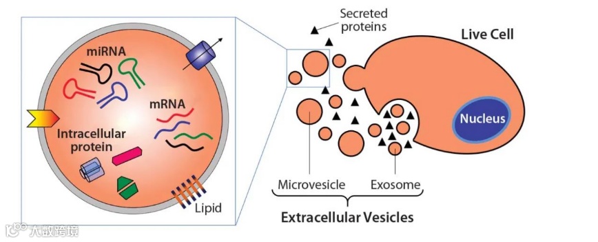 如果把干细胞比作“物流站”,那外泌体完全可以用“快递员”来形容。它的作用就是将干细胞分泌出的各种有用的物质,运送到需要的组织和细胞中。这些囊泡小包裹中包含的很多影响其他细胞行为的重要物质,影响和促进原本细胞功能的提高和自我修复。