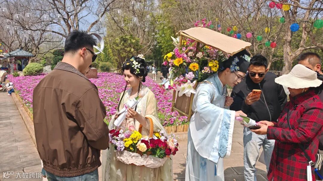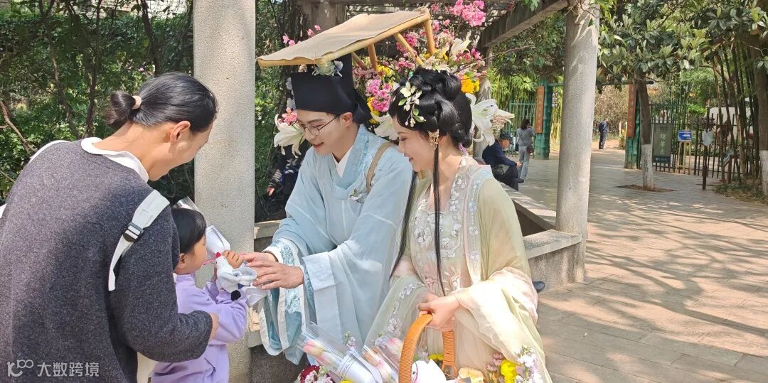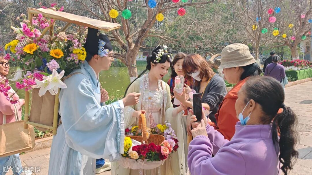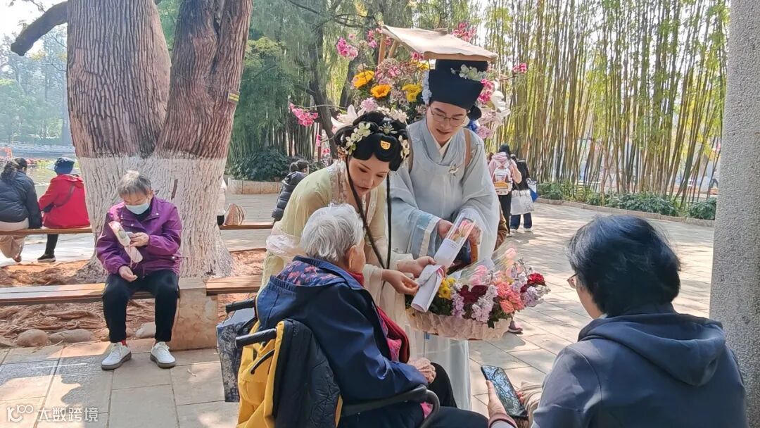 活动现场,工作人员身着雅致古风服饰,与烂漫樱花、秀美翠湖相映成趣,成为春日里一道独特的风景线。工作人员手中捧着精心准备的云南特色鲜切花,每一束花束上都系着设计精巧的金融消保知识卡,实现“一花递温情,一卡传知识”的宣传效果,让“云花”这张云南最亮眼的名片,化身成为金融知识流动传播的载体。