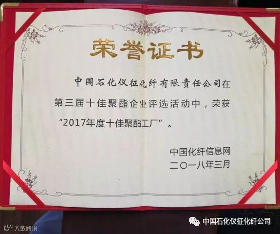 中国石化仪征化纤公司4月17日,记者从仪征化纤公司销售服务中心获悉,在近日召开的第十七届中国杭州•化纤论坛会议上,仪征化纤公司荣获“2017年度十佳聚酯工厂”。