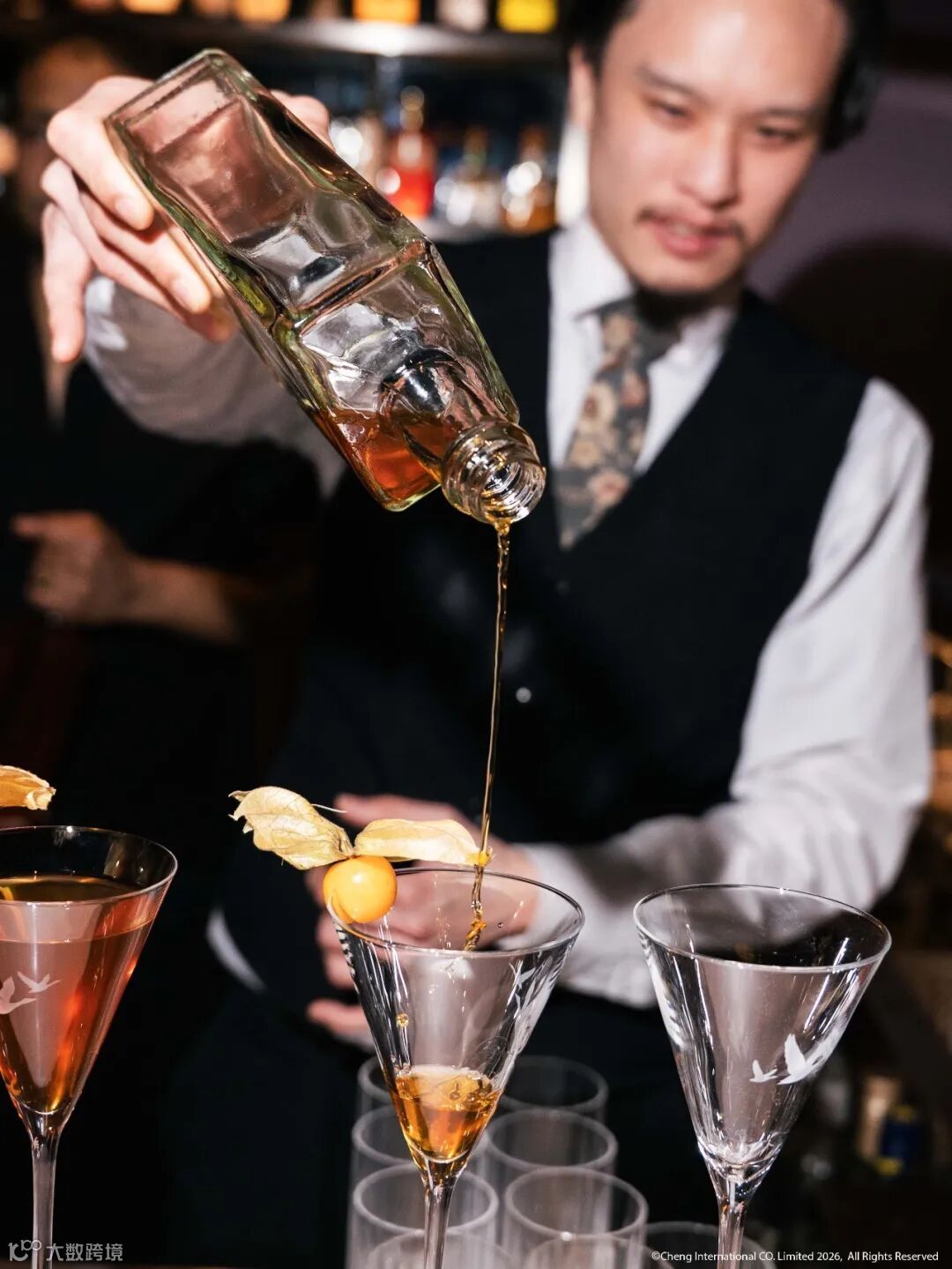 The bespoke Fenjiu cocktails presented by Cheng International quickly became a highlight of the evening. Vege Tseng, runner-up of the Fenjiu Cocktail Competition at Nightjar, was invited to showcase three signature serves crafted with Fenjiu Fen Chiew Red and “Silk Road” Fenjiu Rose, adding a refined flavour dimension to the “Year of the Fire Horse” celebration.