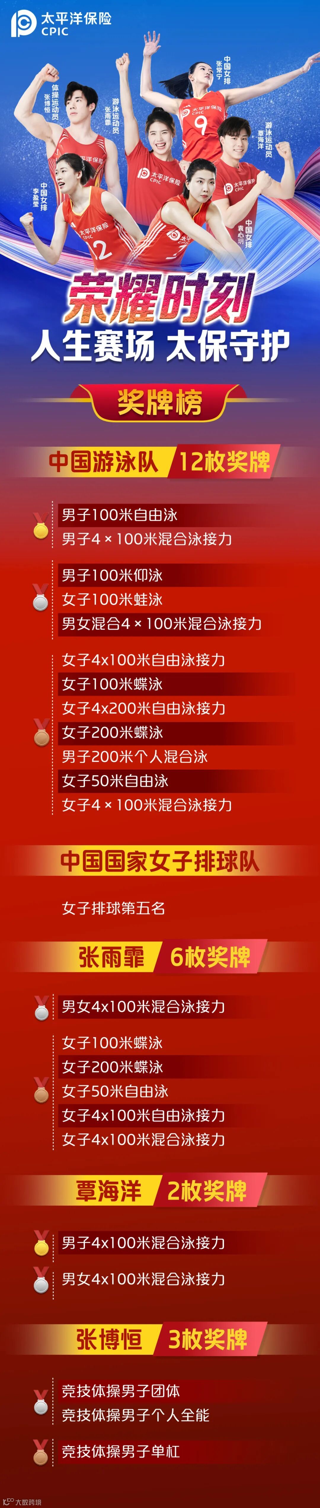 运动员们在赛场上拼搏的同时,中国太保充分发挥保险专业优势,依托专业服务能力,为“太保蓝之队”打造符合运动员、教练员等全生命周期特点的专属保险服务,使中国太保成为“中国游泳队的选择”“中国女排的选择”和“全能体操王的选择”。针对队员平时训练与出征巴黎盛会等重大赛事可能遇到的意外、伤病及个人旅行不便等风险,中国太保提供了涵盖健康保险、团体意外、健康服务在内的一揽子险种解决方案,总计保额为4.68亿元。