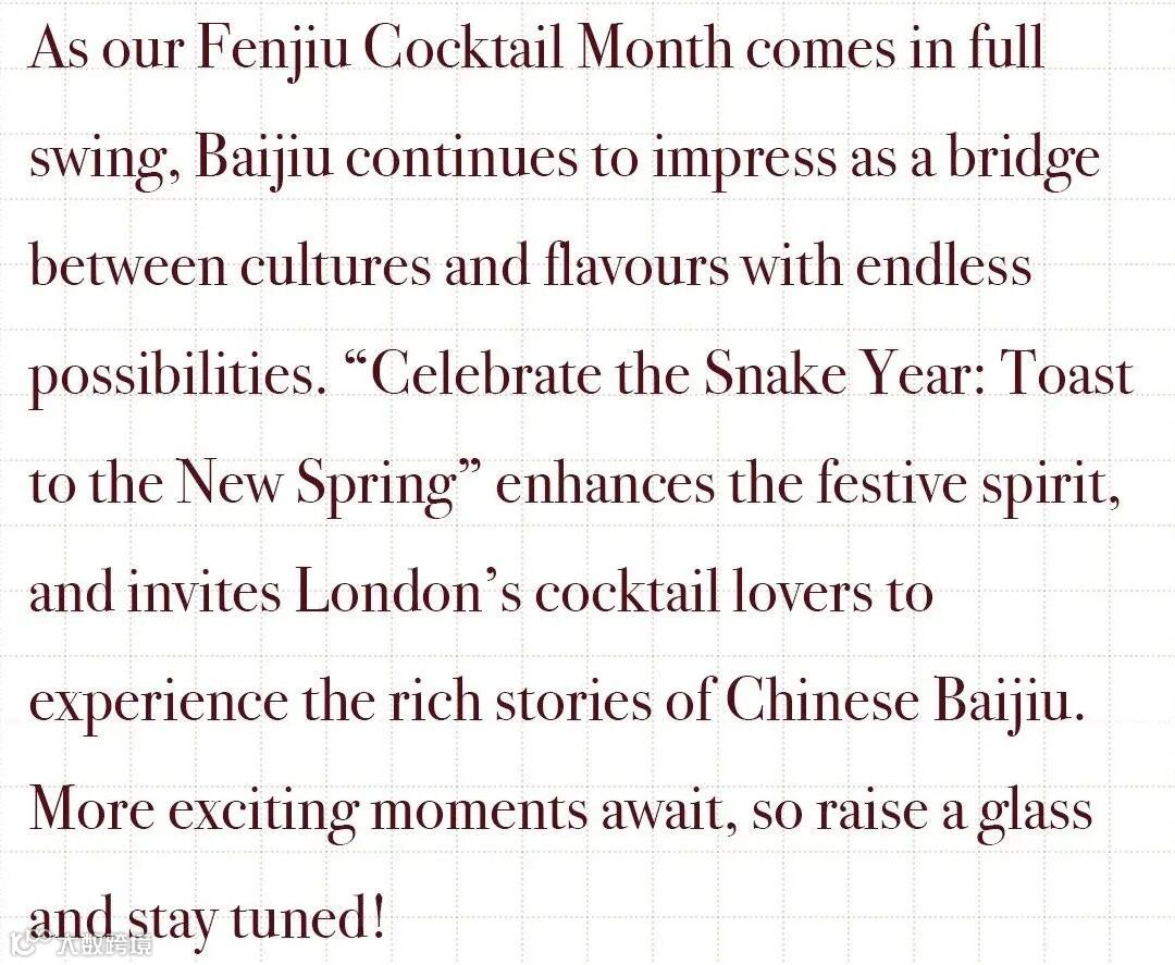 These three exclusive Year of the Snake cocktails, each rooted in Fenjiu’s rich heritage, have been meticulously crafted to showcase the deep cultural essence and innovative potential of Chinese Baijiu. Together, they offer a taste of the unique spirit of the New Year.