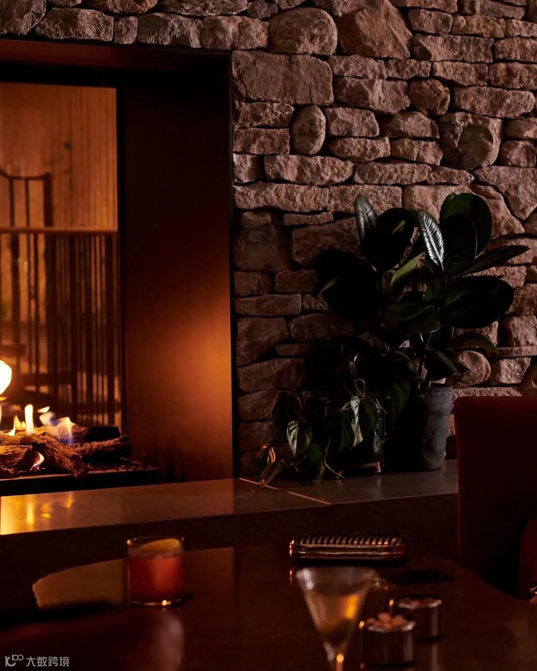 Dover Yard Bar, located on the first floor of 1 Hotel Mayfair, offers a tranquil escape overlooking a lush courtyard. Letting in the natural light, its warm and inviting atmosphere is enhanced by woven furniture and a double-sided fireplace.