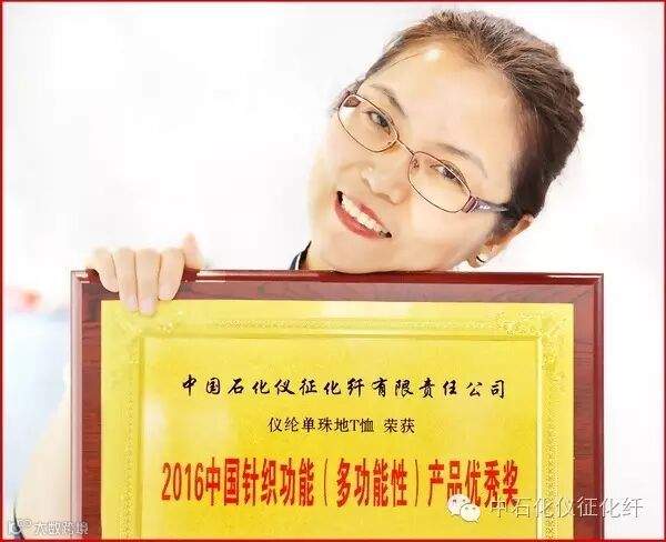 说实话,在这次展会上,公司仪纶产品可谓喜事连连,昨天上午,在中国针织工业协会主办的“针情十年”颁奖典礼暨2016年度中国针织功能性产品颁奖典礼上,公司销售部吴经理兴致勃勃的捧回了仪纶单珠地T恤获得优秀奖。
