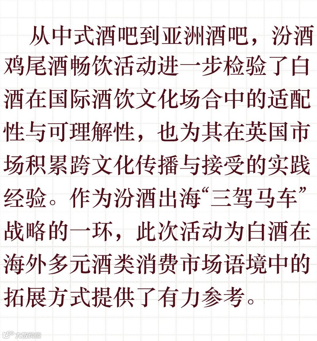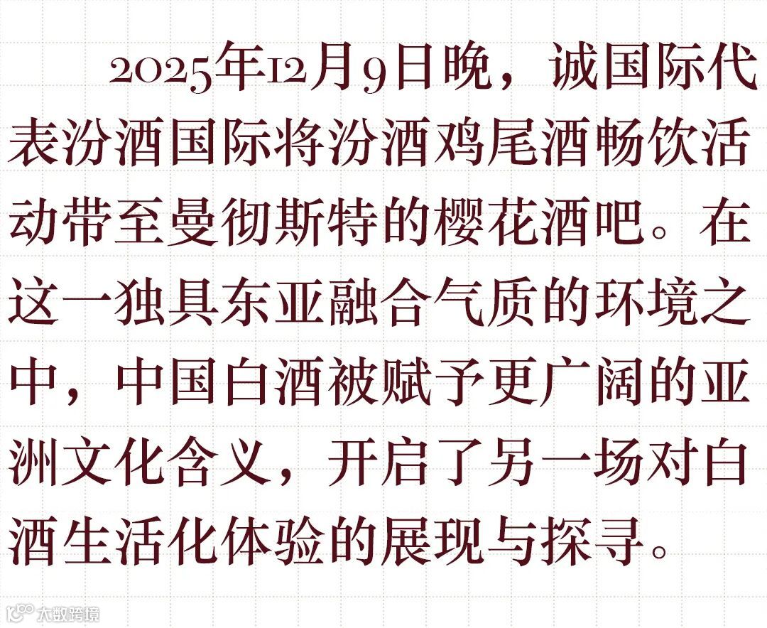 活动吸引了来自不同背景的酒爱好者参与,其中不少本地饮酒者因对亚洲酒文化的兴趣加入体验。随着品饮的展开,交流逐渐从风味本身延伸至更广泛的生活方式层面——汾酒在鸡尾酒中的呈现被认为具有亲和力,与西式鸡尾酒相比展现出不同的饮用节奏与文化内涵,也启发了关于其在当代酒吧与日常社交场景中应用可能性的积极讨论。