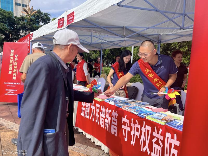 为积极构建和谐健康的金融环境,全面展现玉溪市金融业消费者权益保护新担当、新气象,太保产险玉溪中支积极响应国家金融监督管理总局玉溪监管分局、玉溪市保险行业协会号召。9月5日,在玉溪市红塔区东风广场开展了金融消费者权益保护宣传月”集中宣传活动。本次活动以“金融为民谱新篇,守护权益防风险”为主题,旨在提高公众金融素养和风险意识,我司消费者权益保护分管领导王大鹏副总经理出席了现场活动。