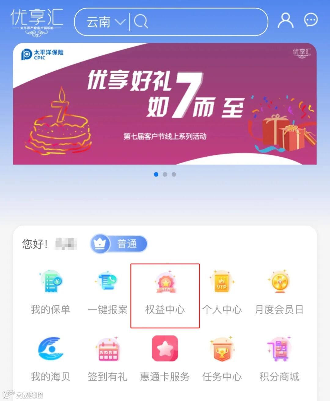 2、点击【权益中心】,即可查看自己已有的会员权益哦~